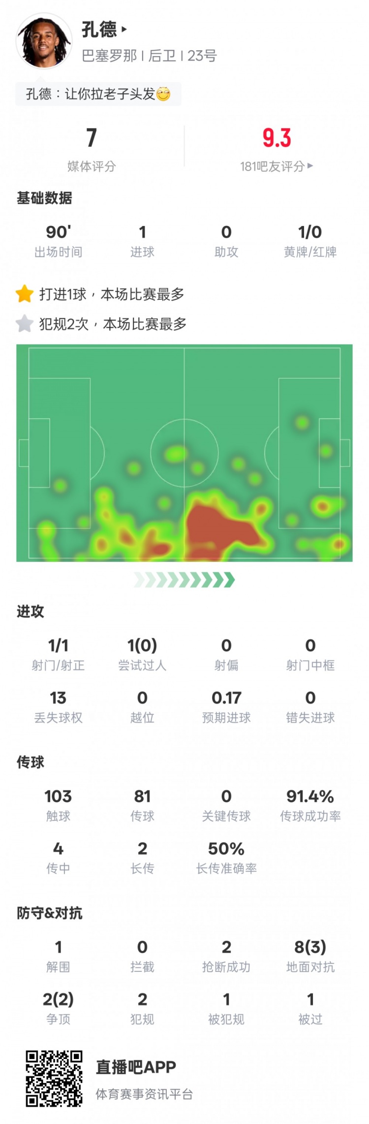 Trong vòng thứ 7 của 2025-26 La Liga, Barcelona 2-1 Real Sociedad, Conde bắt đầu, ghi 1 bàn và có 1 giải phóng mặt bằng và 2 lần đánh cắp. Cả hai đều thành công trong điểm số cao nhất, với số điểm 7,0.