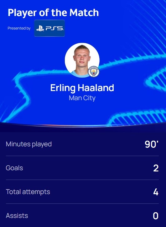 Sau khi Manchester City rút 2-2 với Monaco, Haaland, người ghi bàn hai lần, được bầu làm tốt nhất trong trò chơi.