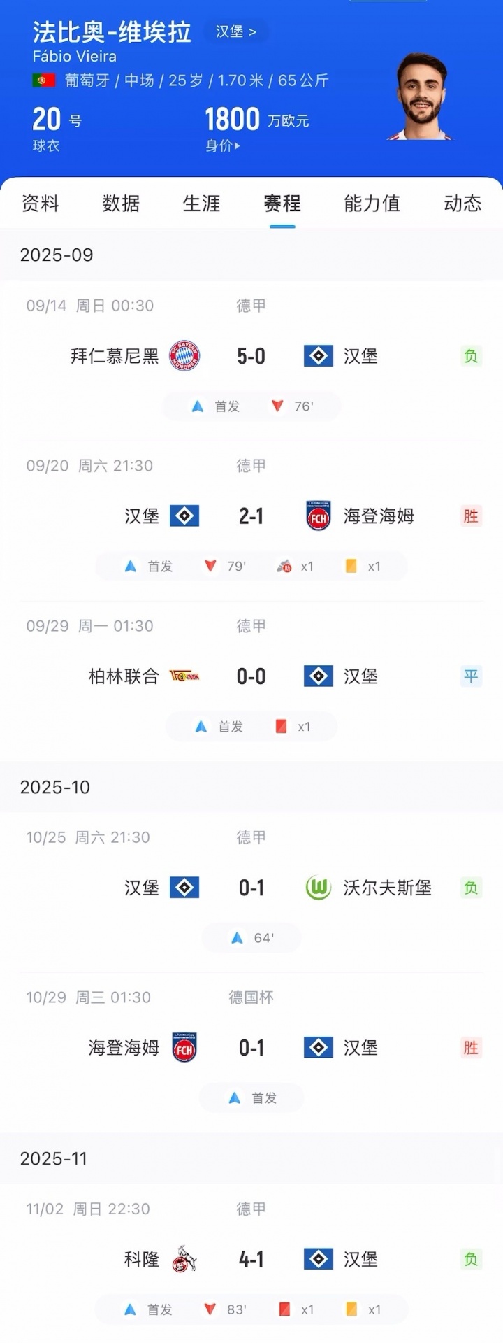 Ở vòng 9 Bundesliga, Cologne đã đánh bại Hamburg 4-1. Cầu thủ Fabio Vieira được Arsenal thuê một lần nữa phải nhận thẻ đỏ. Anh đã nhận 2 thẻ đỏ sau 5 vòng đấu ở Bundesliga mùa này, dữ liệu cùng kỳ là 0 bàn và 1 kiến tạo.