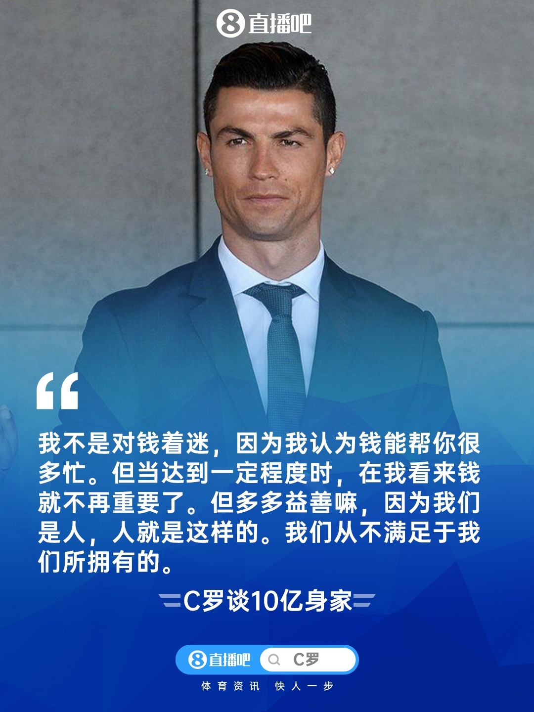 Chủ tịch Qian Luo không quan tâm🤑C Ronaldo: Tỷ phú? Sau một thời điểm nhất định, tiền không còn là vấn đề nữa.